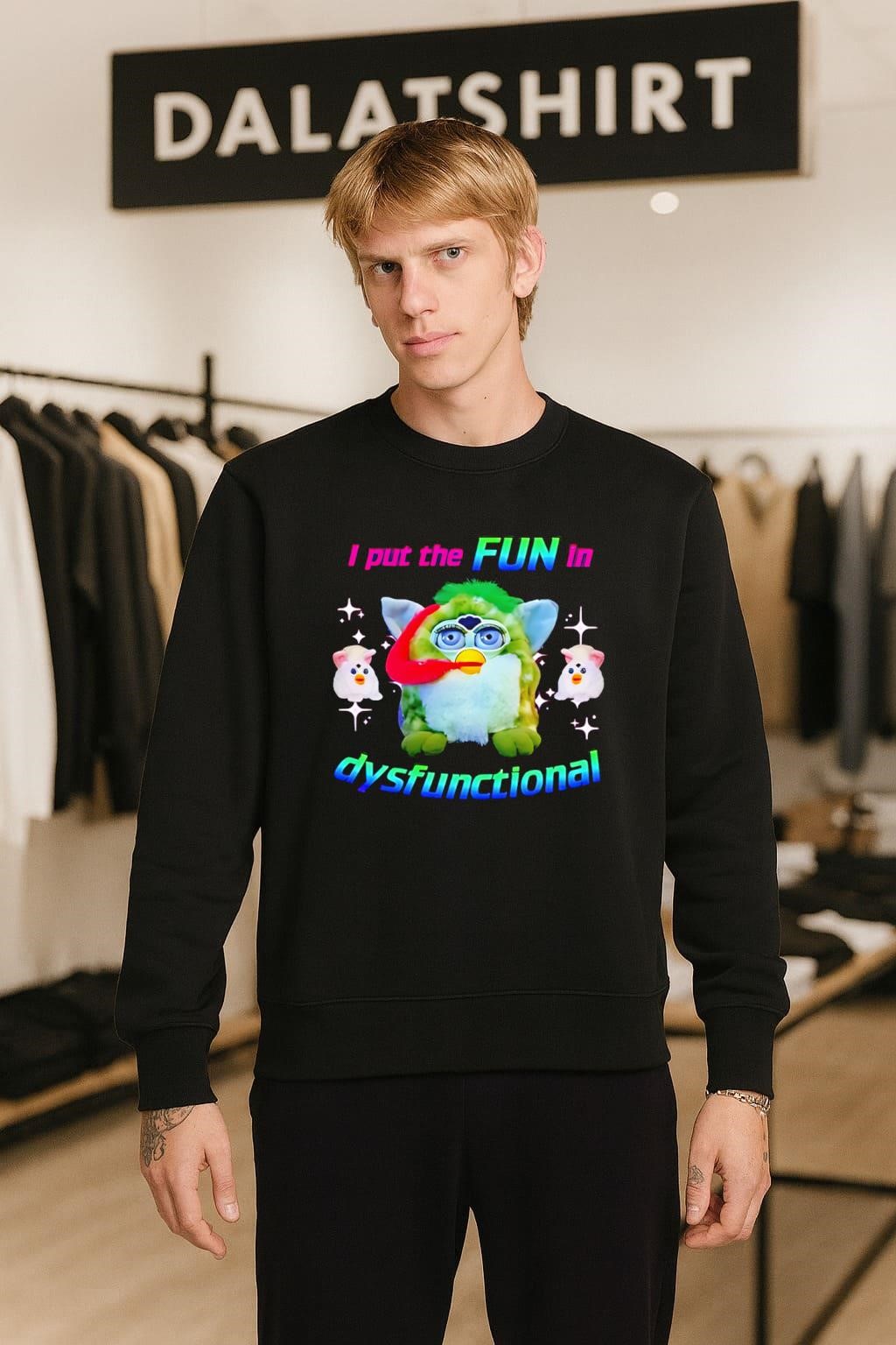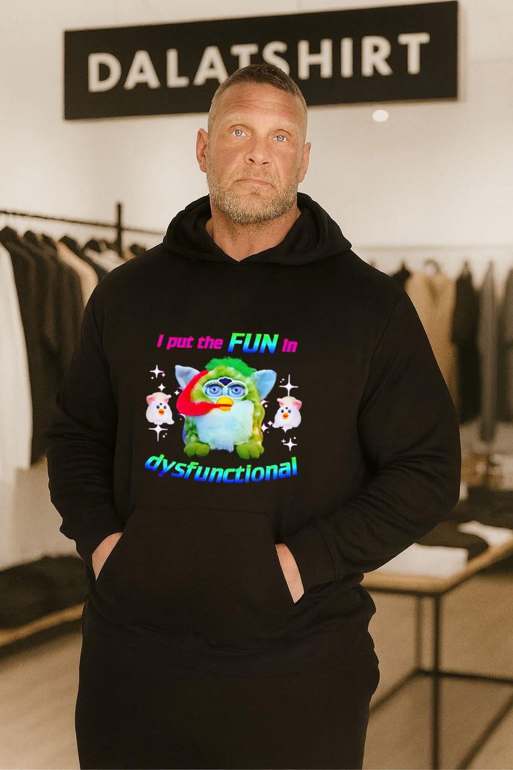 The Green Furby I Put The Fun In Dysfunctional Rainbow shirt is more than just a piece of clothing; it’s a statement. It’s a shout-out to the iconic Furby, that late 90s sensation, combined with a tongue-in-cheek message. It’s for people who enjoy a bit of chaos, some bright colors, and perhaps, a healthy dose of nostalgia. This shirt is a conversation starter, a reminder of simpler times, and a quirky badge of honor.