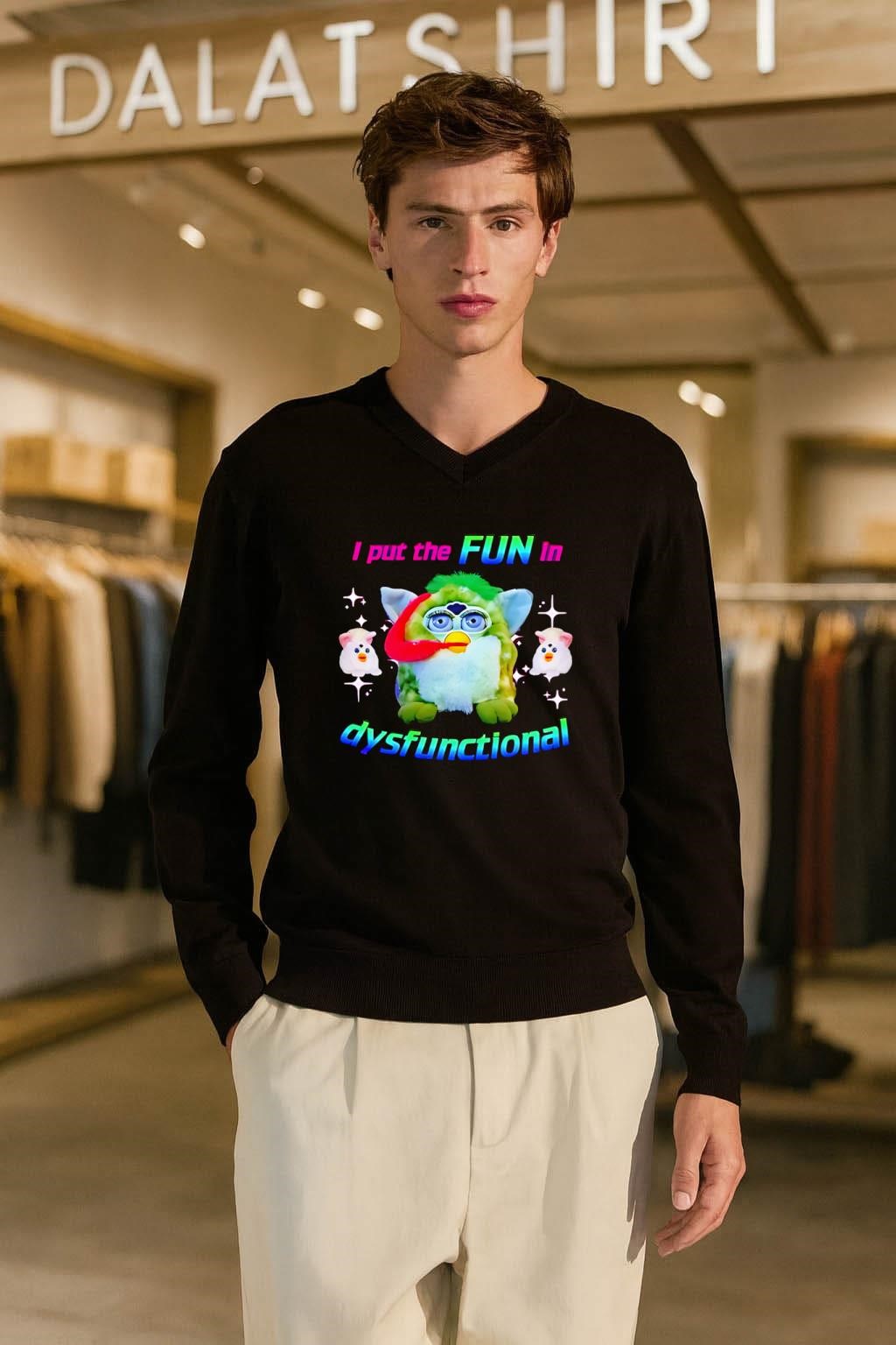 Green Furby I Put The Fun In Dysfunctional Rainbow shirt , hoodie, tank top, sweater, long sleeve tee