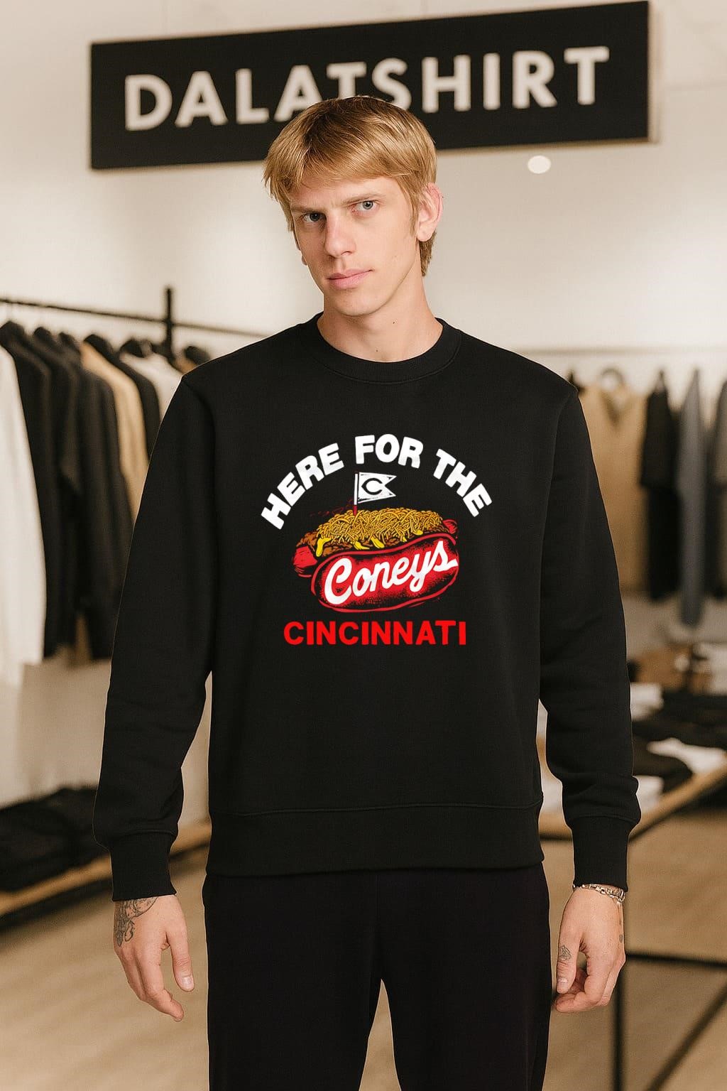 Here For The Coneys Cincinnati Reds Hot Dog shirt , hoodie, tank top, long sleeve tee