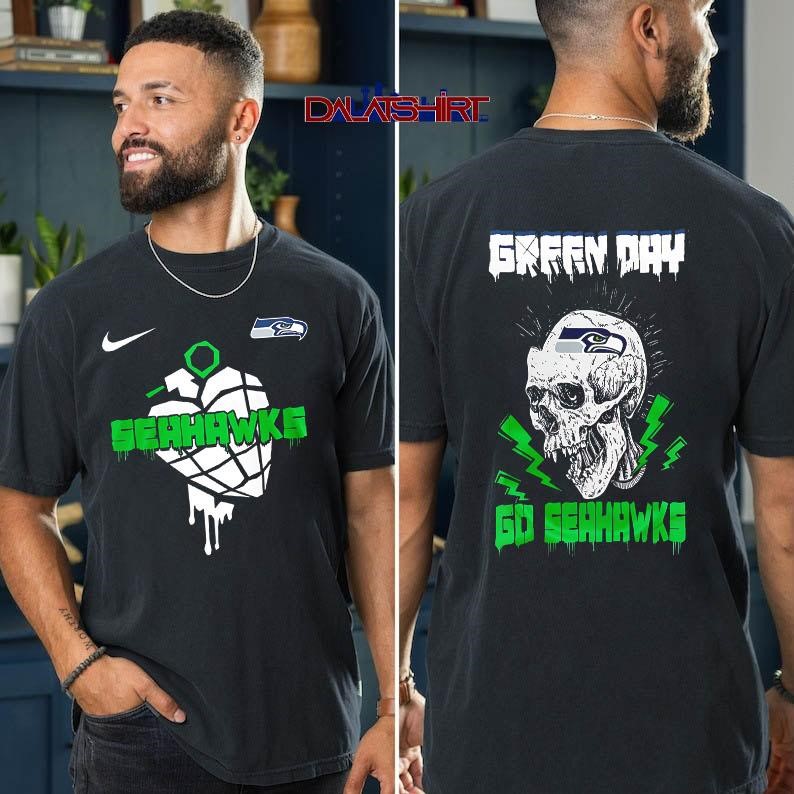 This isn’t your average game-day garb; it’s a collision of worlds. The Seattle Seahawks NFL Green Day Football Skull shirt boldly merges the hard-hitting world of professional football with the rebellious spirit of Green Day. Imagine the roar of the crowd, the smell of hotdogs, and the raw energy of Billie Joe Armstrong on stage, all somehow crammed into one piece of apparel. It’s for fans who embrace the chaos, the passion, and the refusal to be put in a box. It’s a shout-out to individuality, a wearable testament to loving music, sports, and well… having a little bit of an edge.
